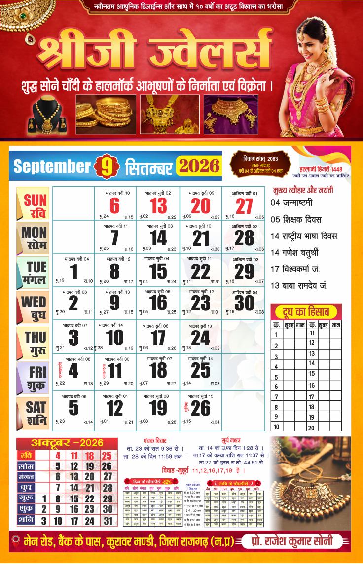 2026 Hindu Panchang Calendar Design CDR File