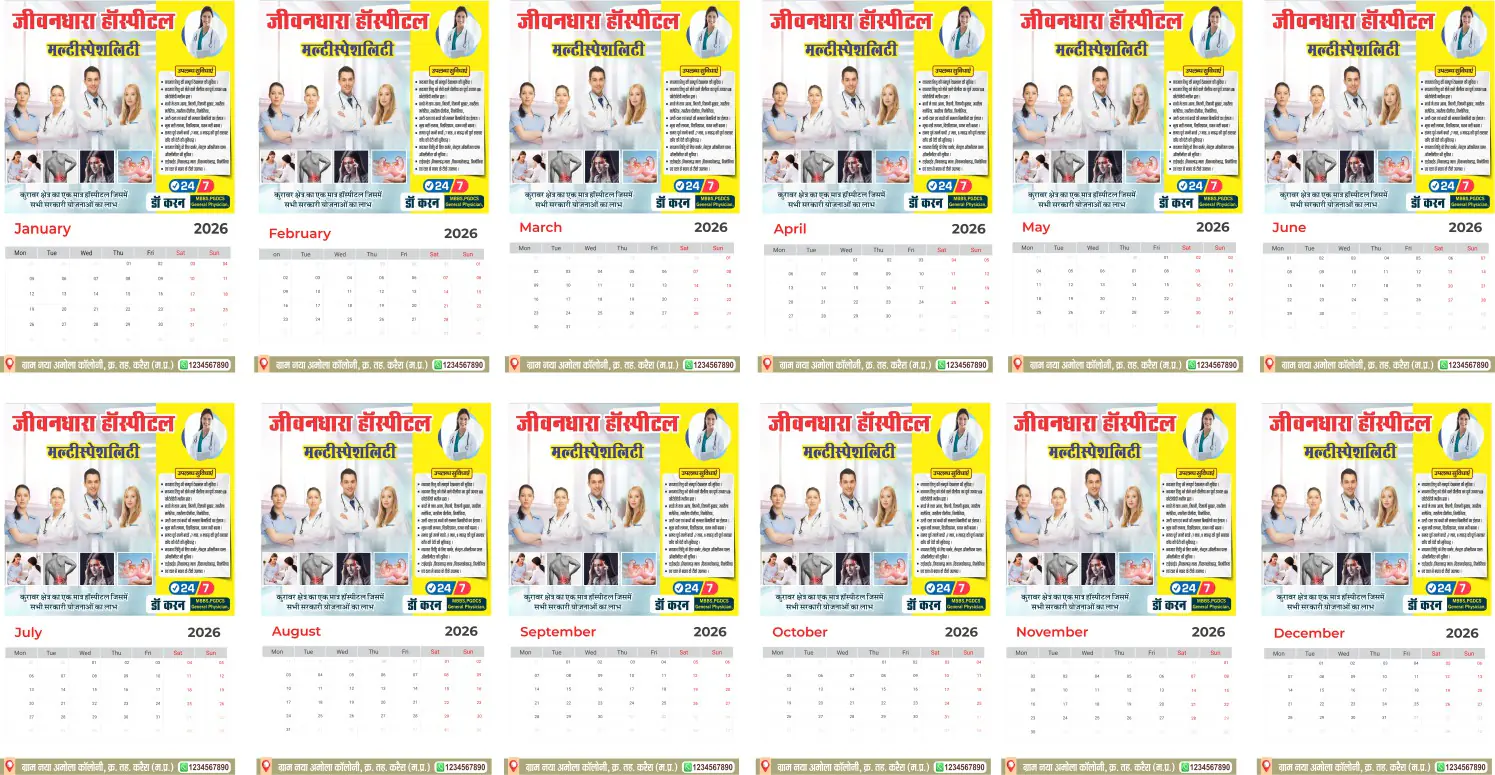 2026 Hospital Calendar Design | 12 Months 12 PagesCDR File | CorelDRAW X3–2025 Compatible