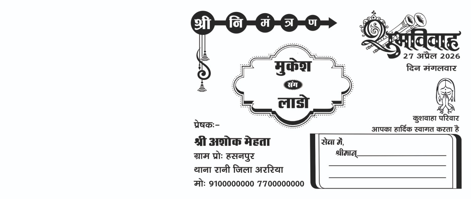 CDR files fully editable hain aur high-resolution print-ready format me available hain, jisse aap premium quality invitation cards aasani se print kar sakte hain. Ye designs aapke wedding invitation ko classy, traditional aur memorable banate hain.
