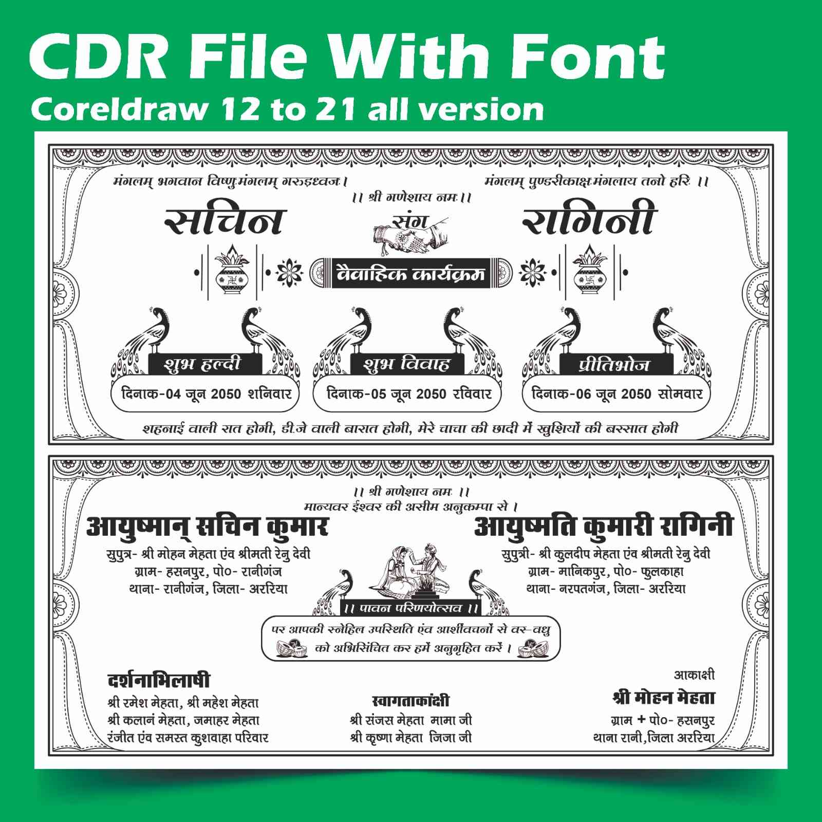 Wedding card If you buy this file, you will get Coreldraw file along with fonts. You can fully edit this file.