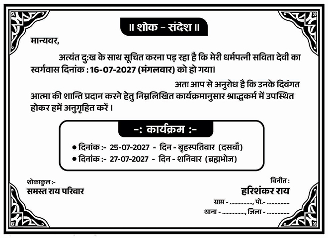 Download Shok Sandesh Invitation Card Designये डिजाईन प्रिंटिंग प्रेस वालों के लिए है अगर आपको एडिट करना आता है तभी खरीदें