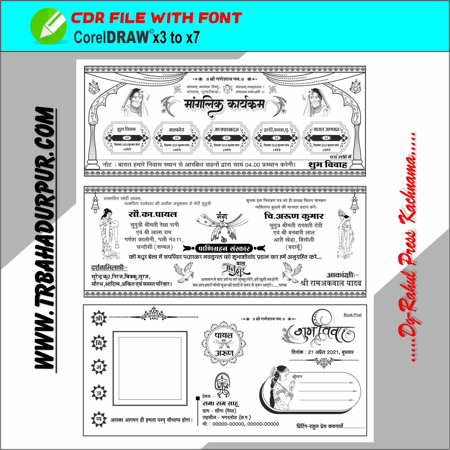 New Hindu Wedding Card 2024 CDR x3 With Font