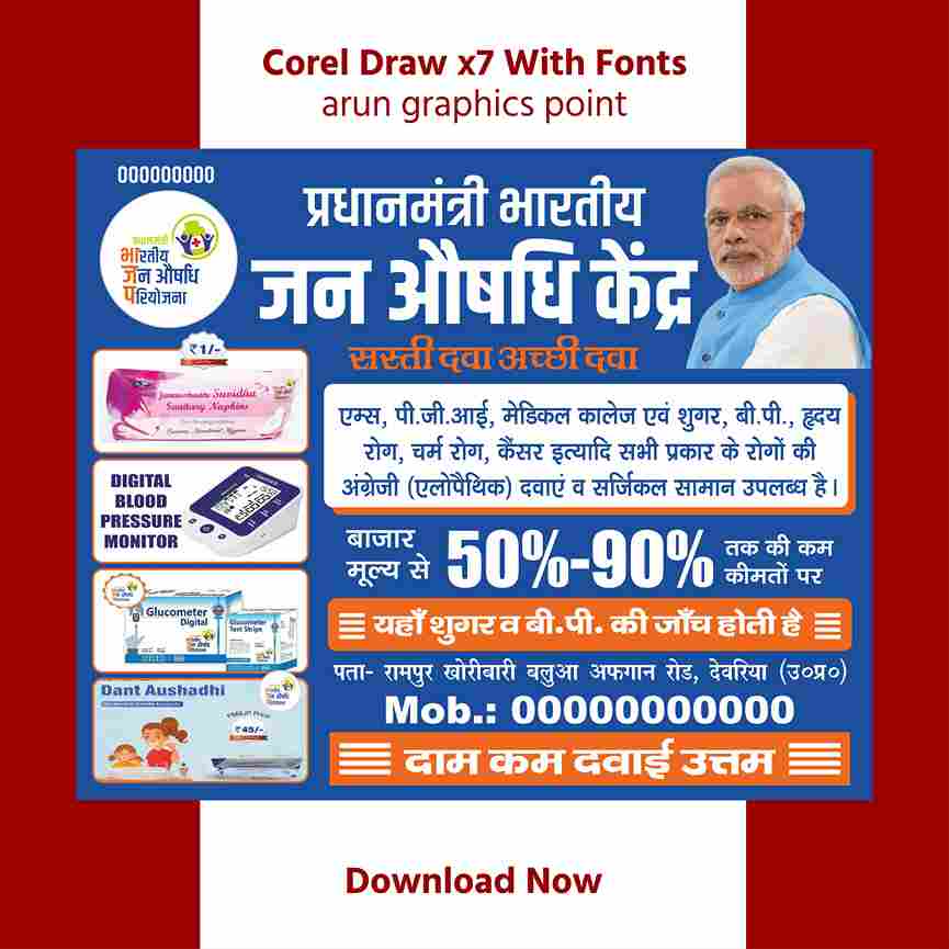 jan aushadhi banner design (11×9) With Fonts Corel Draw x7