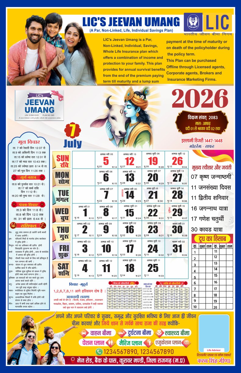 LIC 2026 Premium Hindi Panchang Calendar – 6 Setter