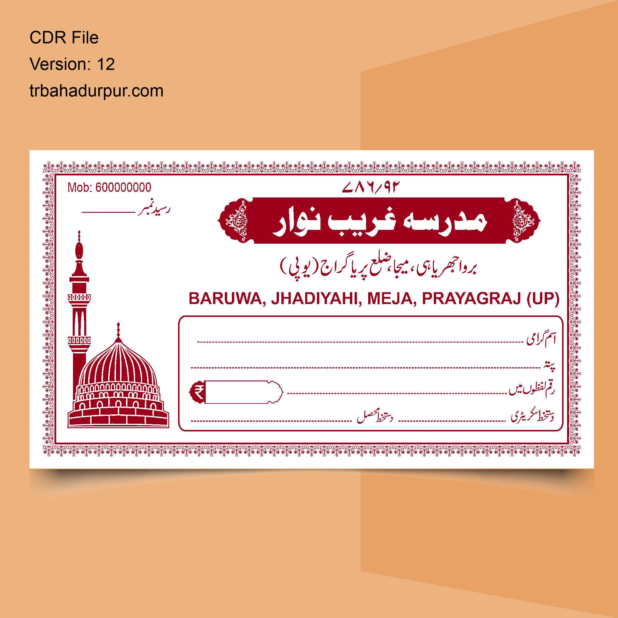 Madarsa Rasid design CDR file printing aur madrasa use ke liye ek simple aur clean layout me banayi gayi hai. Is design ko aap donation receipt, chanda book, ya madarsa rasid ke kaam me use kar sakte hain. File CorelDRAW version 12 me save hai aur fully editable hai, jisme aap apne hisab se sab kuch change kar sakte hain.