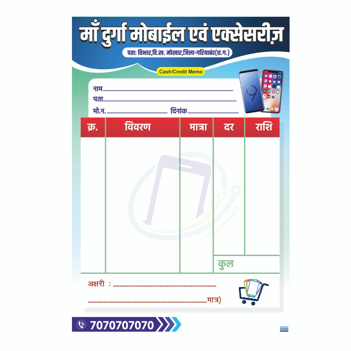 Create professional and attractive mobile shop bills effortlessly with this Mobile Shop Bill CDR File V13 with Font. Designed for CorelDRAW Version 13 (X3) and above, this template is fully editable and print-ready, making it a perfect choice for mobile stores, gadget shops, and electronics retailers who want to maintain a neat and branded billing system.