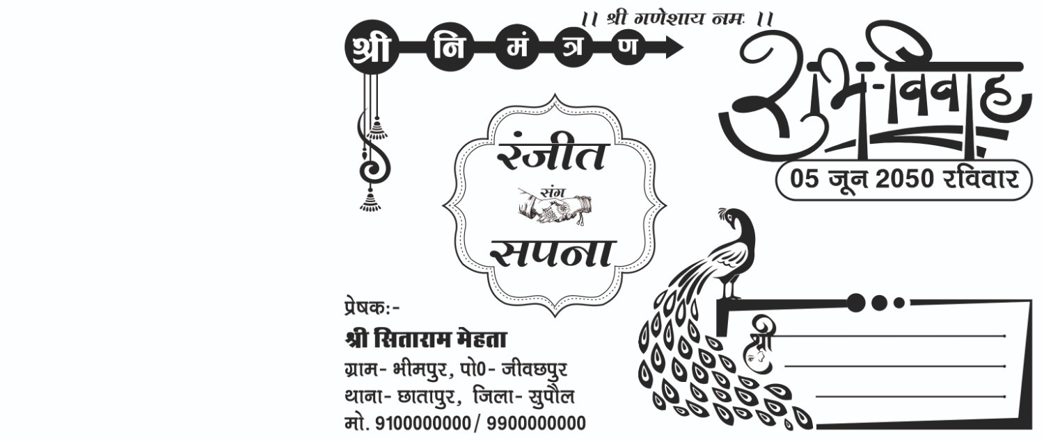 Wedding card Size 250×197, Colour CMYK, designing by Coreldraw software mein kiya gaya hai