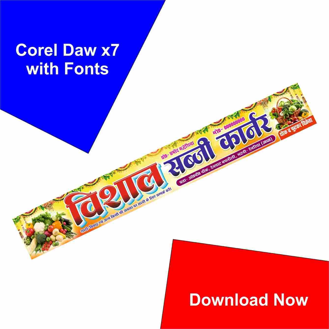 Vishal Sabjee Corner Shop Banner Desing with Fonts Corel Draw x7ये डिजाईन प्रिंटिंग प्रेस वालों के लिए है अगर आपको एडिट करना आता है तभी खरीदें